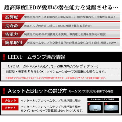 【楽天スーパーSALE限定10%割引】[RSL]【あす楽対応】【Aセット】トヨタ ノア 70系・ヴォクシー 70系 専用設計 LED ルームランプ セット NOAH VOXY ドレスアップ 70ノア 70ヴォクシー ZRR70 ZRR75【専用工具付】送料無料